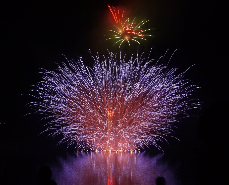 どんな迷惑かというと、花火撮影に三脚が必要な撮影組は後ろ側のスペースを取るのが暗黙の了解になっているのに、一人のおばさんがど真ん中の前側に陣取るものだから、すべてフレームイン。