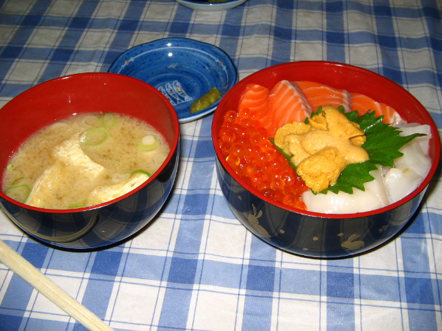 新鮮ないくら、さけ、ほたて、いか、そして、ご主人お勧めの高級うに!