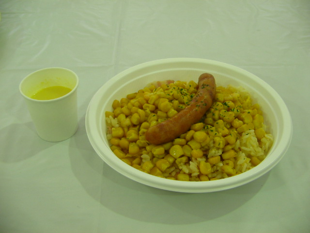 コーンだらけのチャーハンに、ウインナーがのっかっていたんですが、このウインナーの中にもコーンが!!